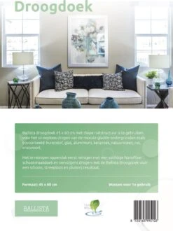 De microvezel droogdoeken 45 x 60 cm met ruitstructuur zijn te gebruiken voor het drogen van meerdere ondergronden zoals kunststof, glas, aluminium, keramiek, natuursteen, rvs, enzovoort. Eerst voor reinigen met een vochtige microvezel schoonmaakdoek vervolgens drogen met de Clean Dry of Ballista droogdoek voor een glanzend zeer schoon streeploos en pluis vrij eind resultaat.