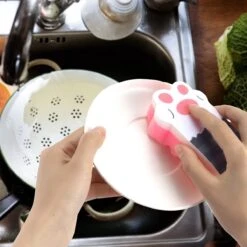 Origineel design De spons heeft een vrolijk, origineel design met een schattige kattenpootafdruk. Niet alleen leuk voor kattenliefhebbers, want iedereen wordt vrolijk van deze spons! De schuurspons heeft een fijn formaat, waardoor die perfect in je hand past.